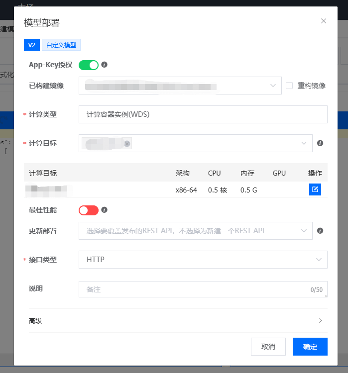 快速开始快速开始-发布你的训练模型Version: 2.17.1On this page快速开始-发布你的第一个模型以 逻辑回归算法 为例,进行模型发布。在线模型发布校验完成,点击右上角 【发布上线】,填写相关信息,进行模型发布。选择计算目标和调整计算目标参数.进入左侧菜单栏【工作区】-【发布】,进入到模型发布管理界面,查看发布模型。点击行操作栏API详情,查看API地址。恭喜你!你已经可以在平台上发布你的模型了。